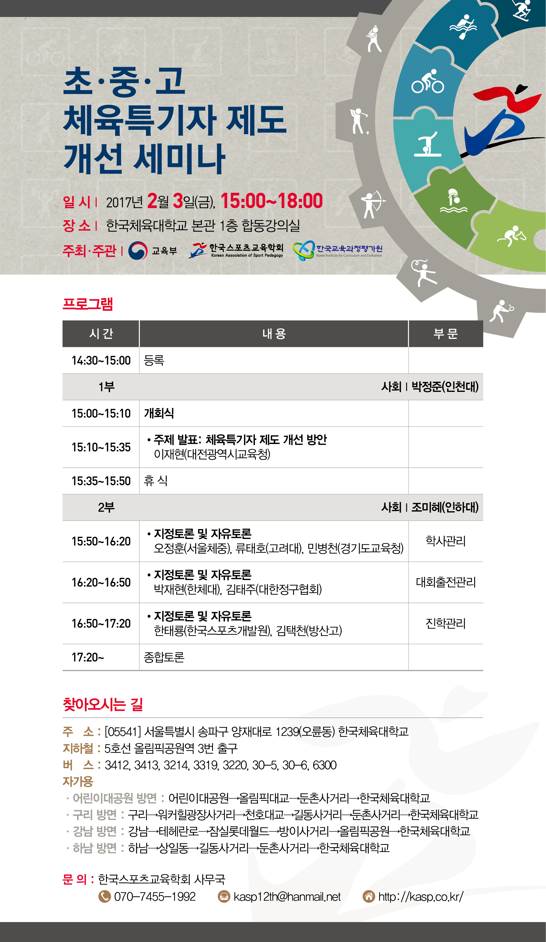 장소: 한국체육대학교 본관 1층 합동강의실