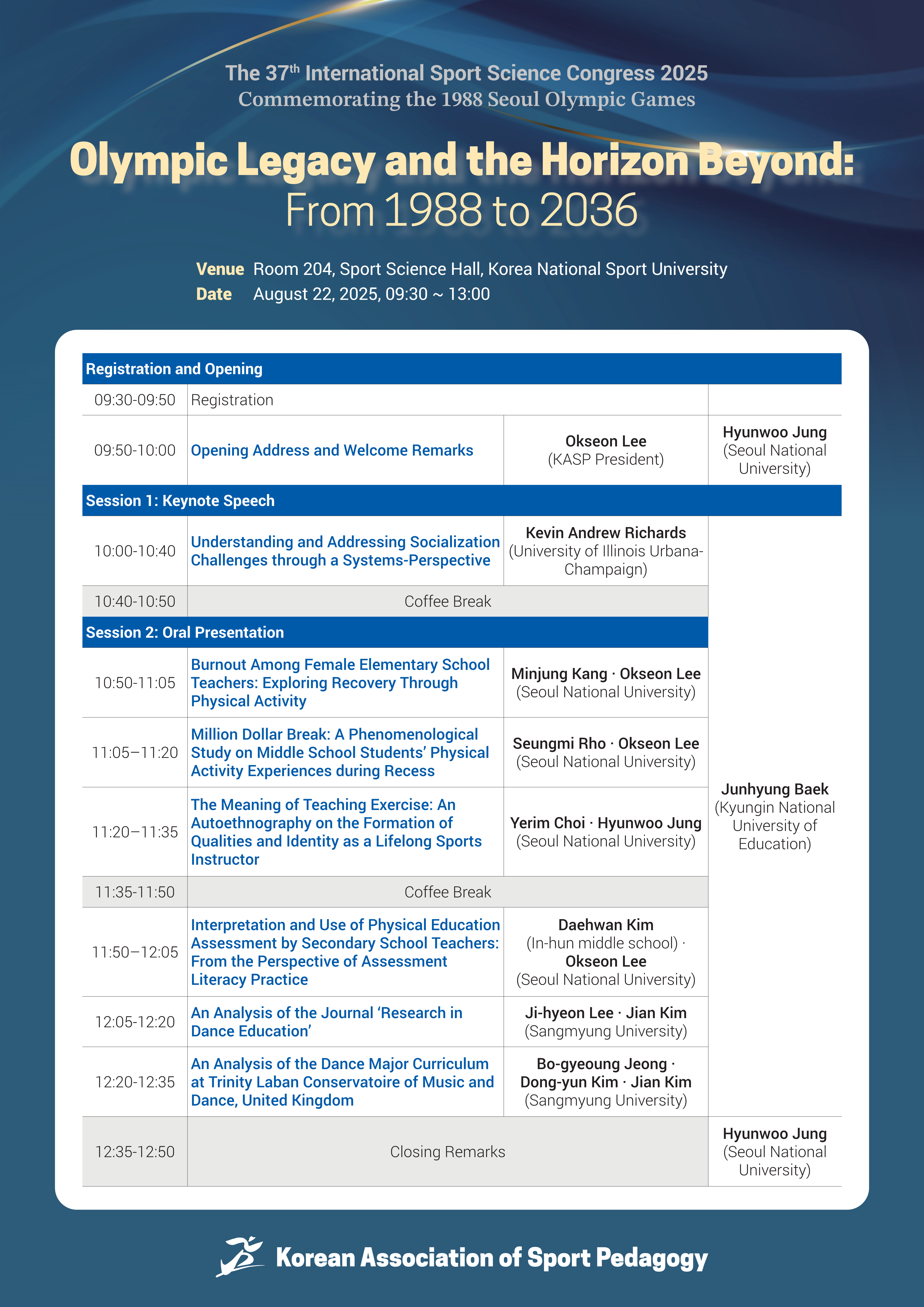 제37회 88서울올림픽기념 국제학술대회 2일차 일정 안내
