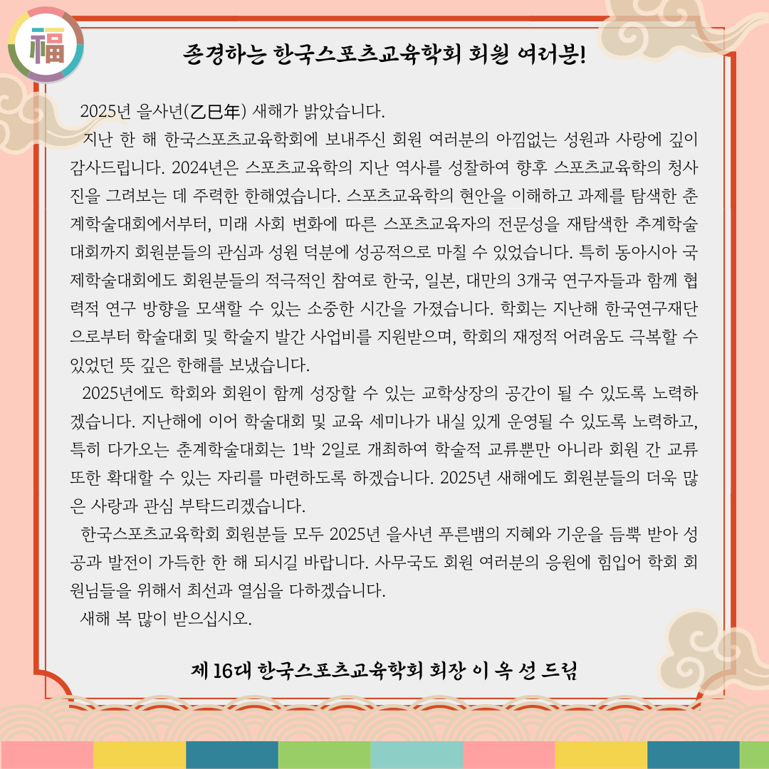 2025 한국스포츠교육학회장 신년 인사
